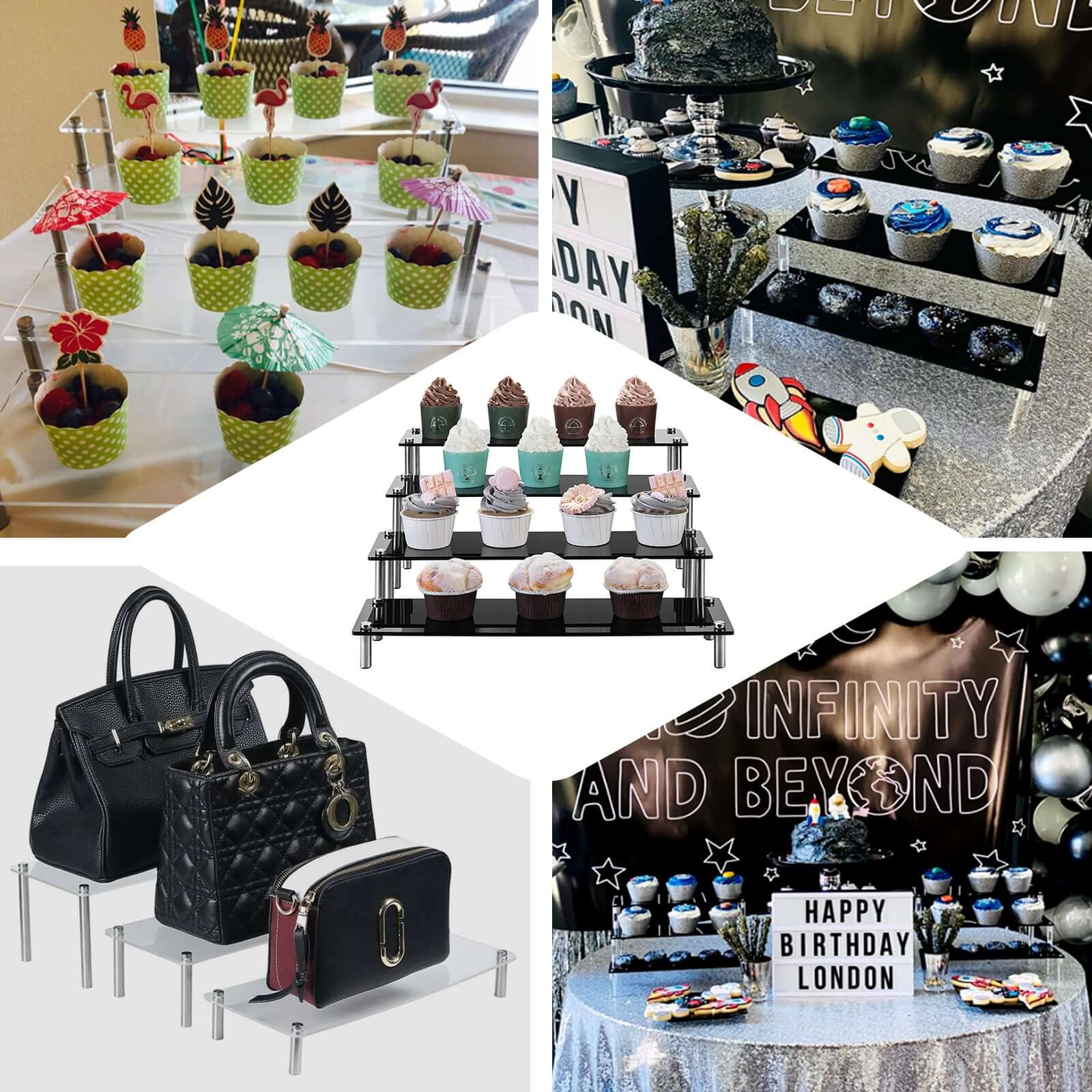 Set of 4 Premium Acrylic Dessert Display Stands Clear - Sleek Multi Level Buffet Riser Serving Tray Platter for Cupcakes Pastries & Appetizers