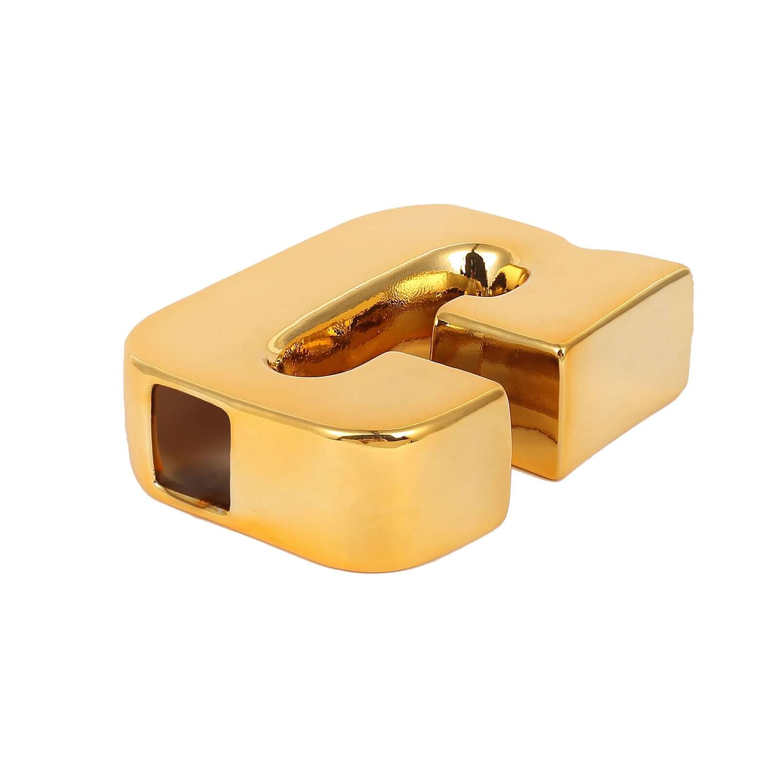 Shiny Ceramic Vase Letter "G" Gold Plated - Chic Bud Planter Pot for Events & Decor 6"
