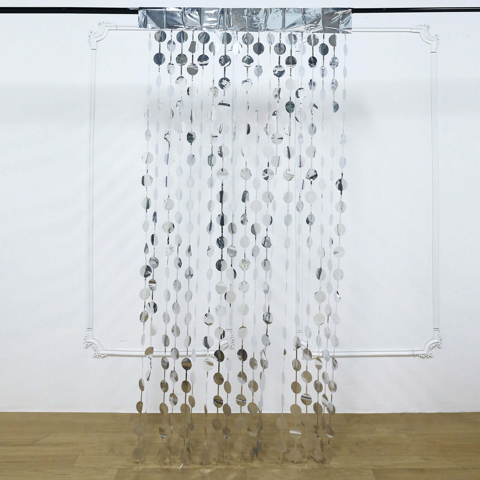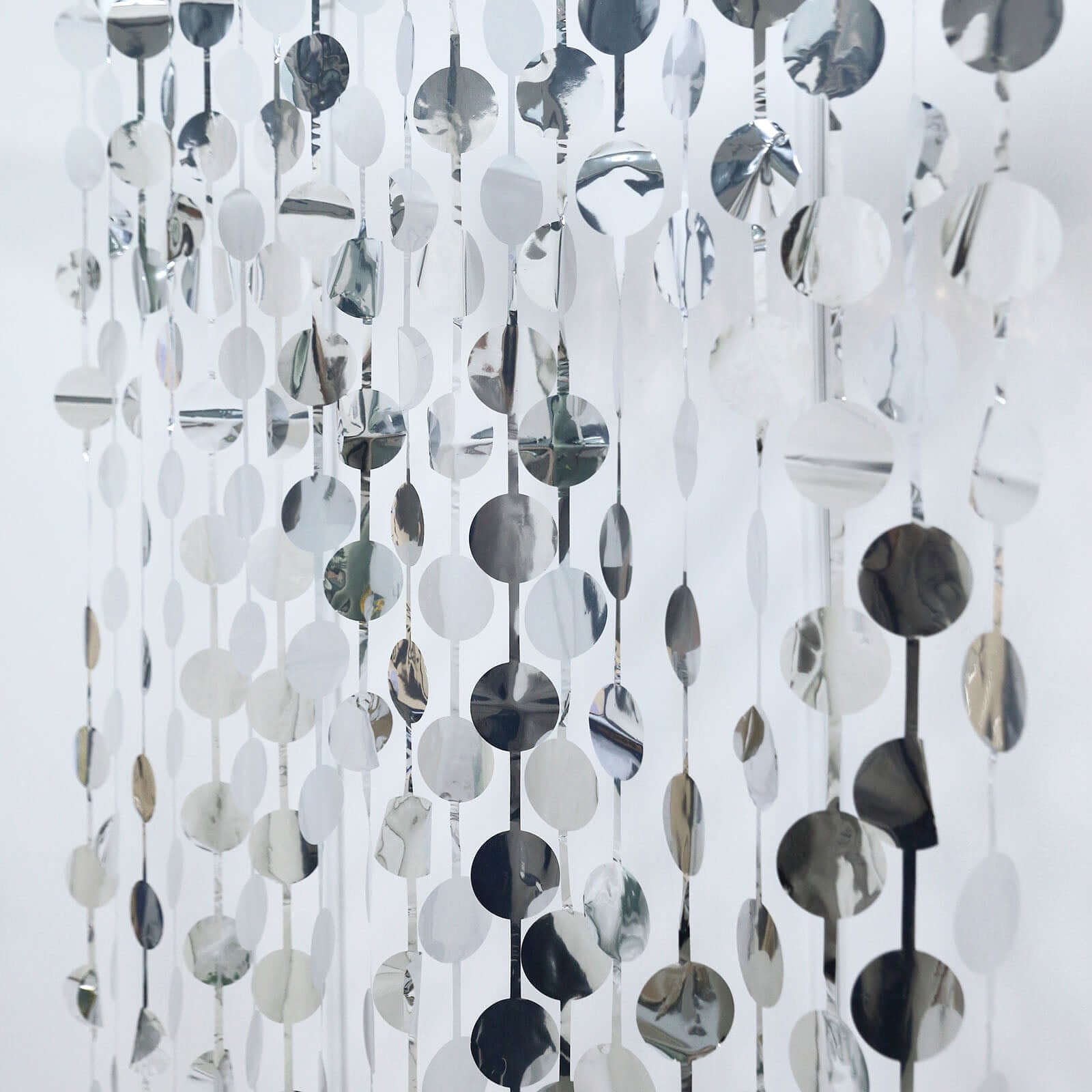 Silver Round Chain Foil Fringe Curtain Party Backdrop, Metallic Silver Tinsel Streamer Party Decor - Door Window Foil Curtain - 3ftx6.5ft