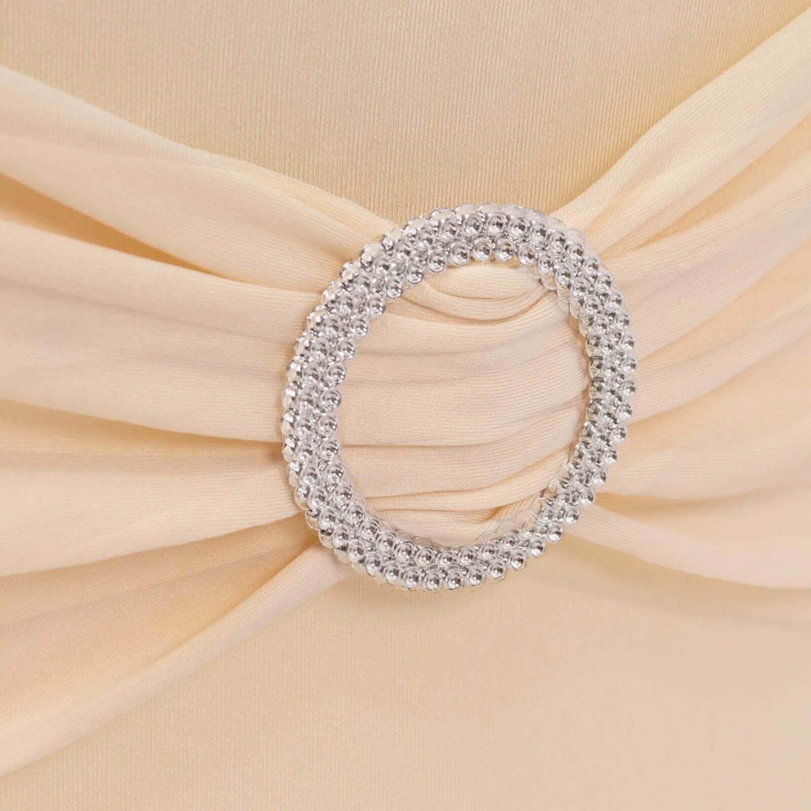 Stretch Spandex Chair Cover Beige for Folding Chairs - Secure Fit Slipcover with Silver Rhinestone Buckled Sash Band