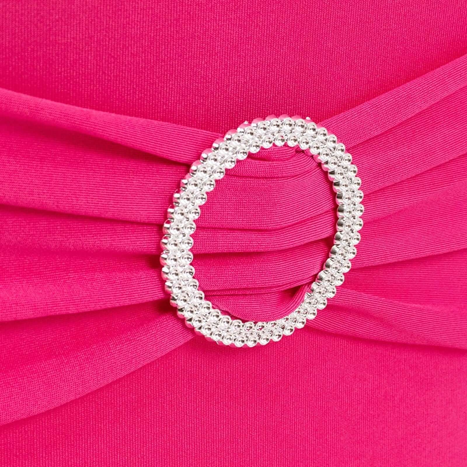 Stretch Spandex Chair Cover Fuchsia for Folding Chairs - Secure Fit Slipcover with Silver Rhinestone Buckled Sash Band