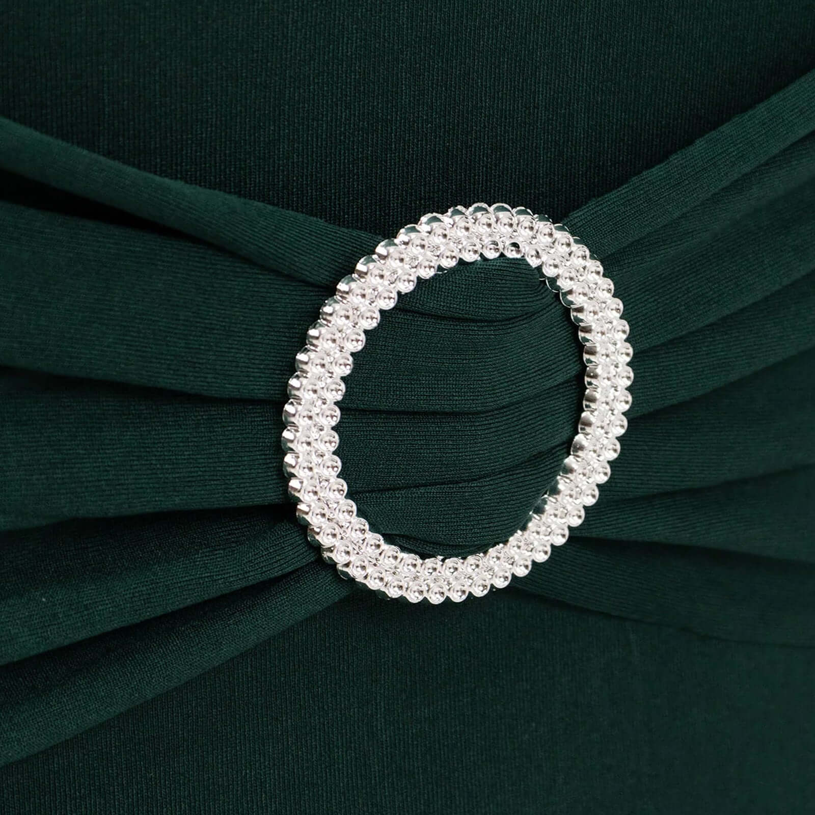 Stretch Spandex Chair Cover Hunter Emerald Green for Folding Chairs - Secure Fit Slipcover with Silver Rhinestone Buckled Sash Band