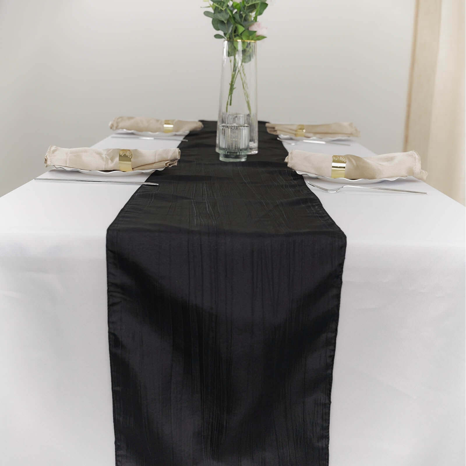 Taffeta 12"x108" Table Runner Black - Accordion Crinkle Design