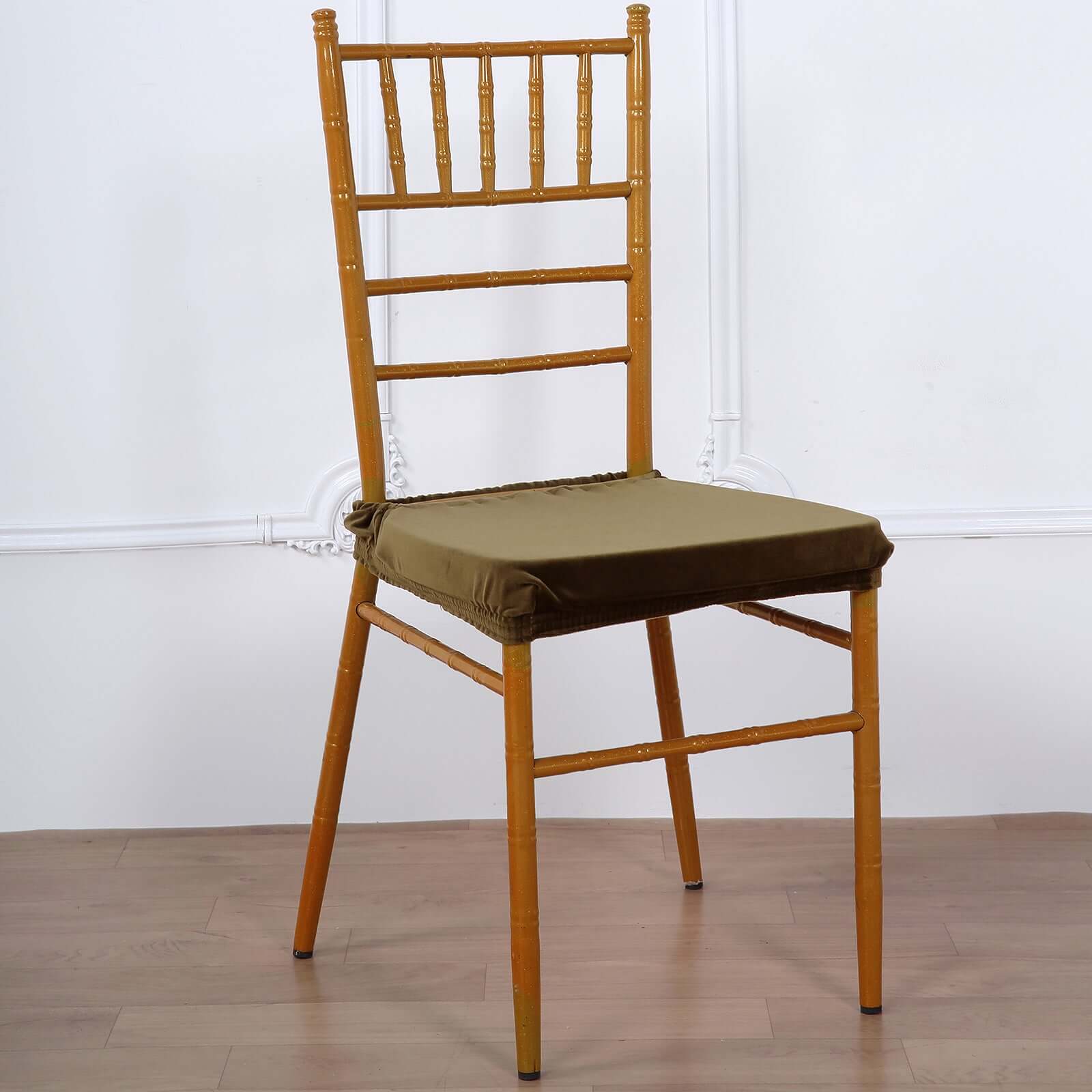 Velvet Chair Cushion Protector Stretch with Tie for Dining Chairs Olive Green - Durable Cover for Formal Gatherings