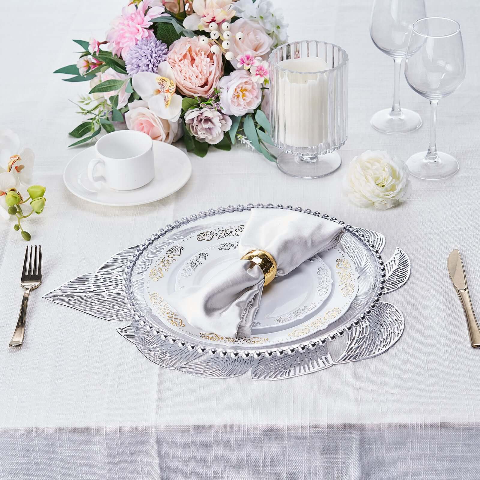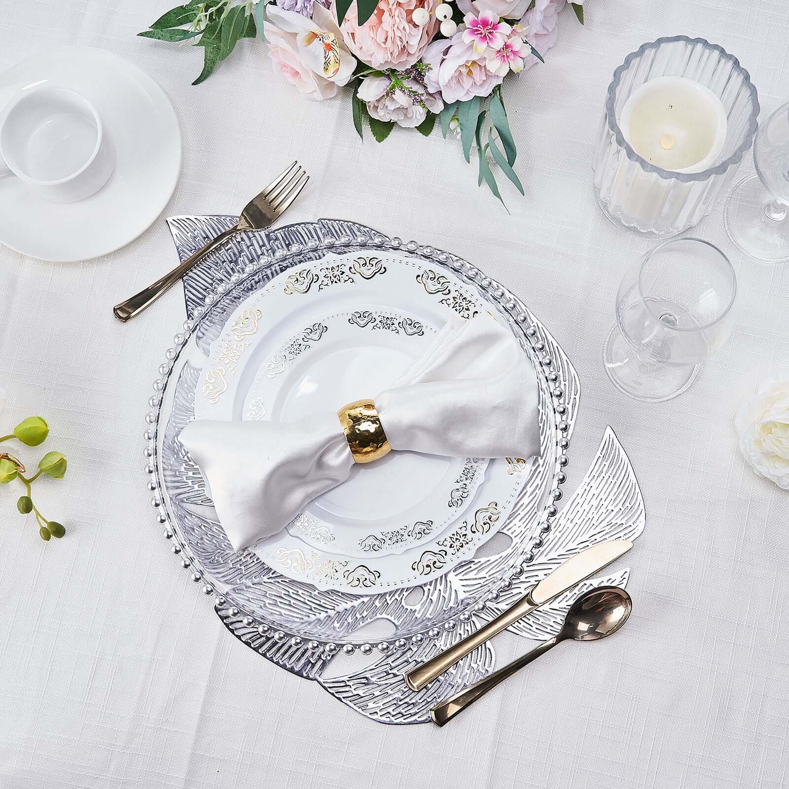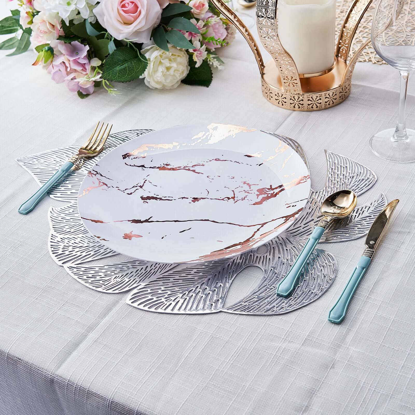 6-Pack Dining Table Mats Monstera Leaf Design Silver - Vinyl Non-Slip Surface for Tropical Themes 18"