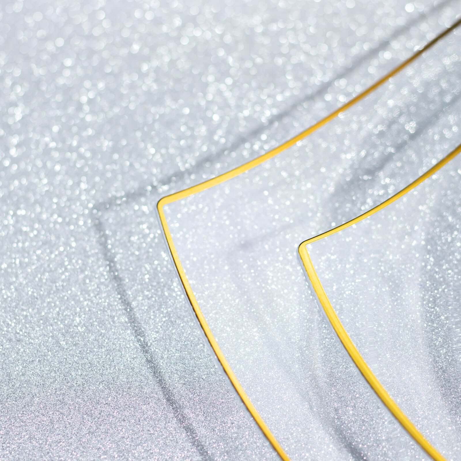 10-Pack Plastic 8" Square Dessert Plates in Clear with Gold Wavy Rim Modern - Disposable Salad Appetizer Party Plates