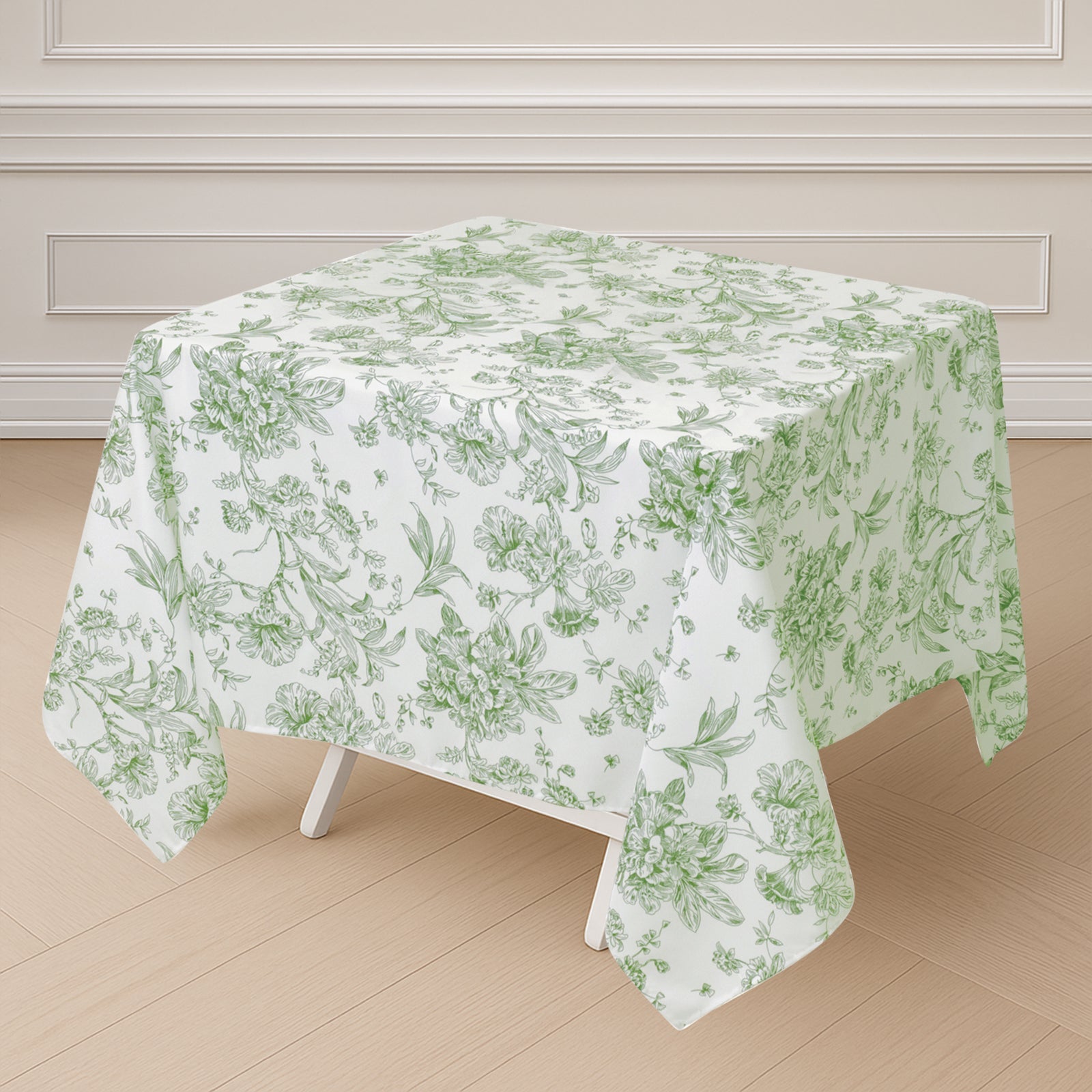 Polyester 70"x70" Square Tablecloth White - Dusty Sage Green French Toile Pattern for Elegant Occasions