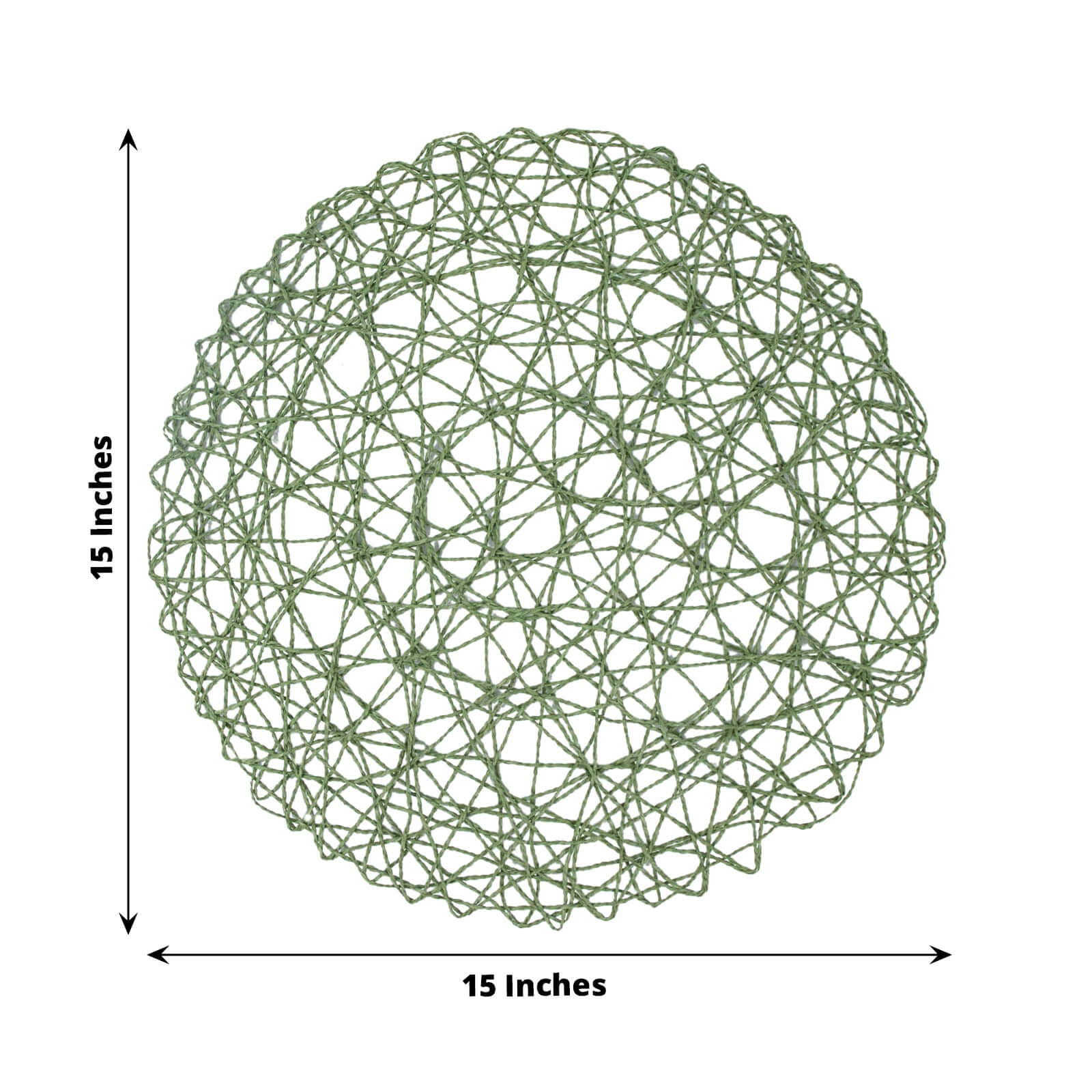 6-Pack Table Placemats Woven Fiber Design Olive Green Round - Disposable Mats for Dining and Events 15"